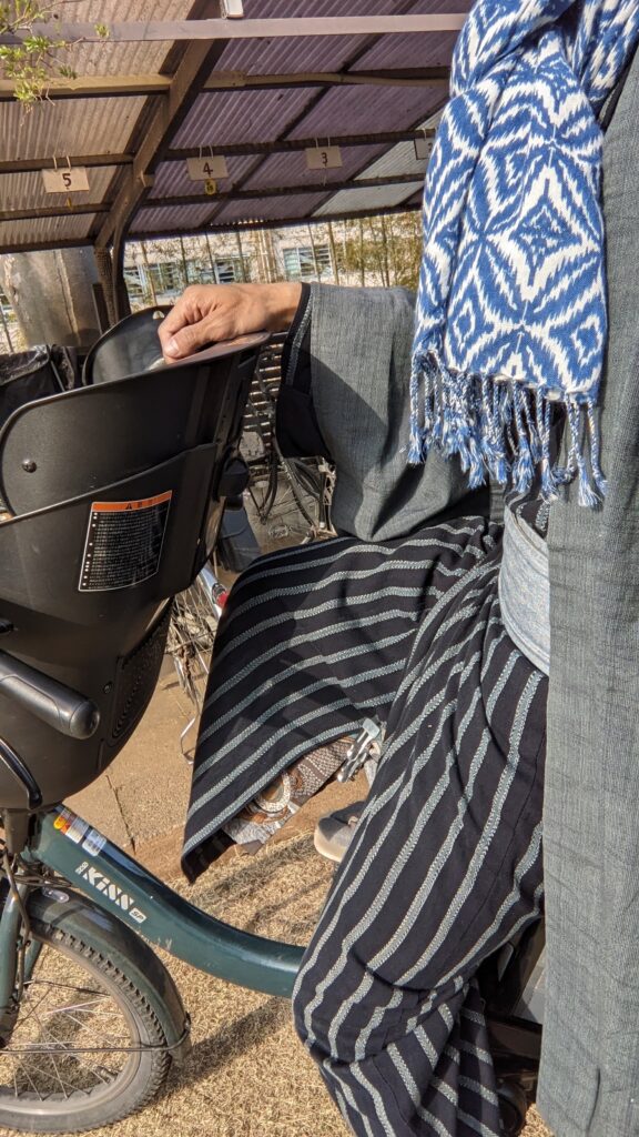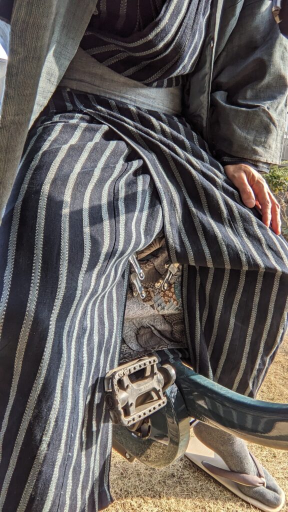 袴なしで着物で自転車に乗ると、裾がめくりあがって恥ずかしいですよね^^
